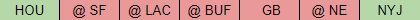 After an easy home win against the Texans, the Dolphins have a rough road trip going to San Fran, LA, and then Buffalo. Then they have the Packers at home, and then it’s off to a snow game in New England. They close out with the Jets at home, but by that point, it’s already too late.